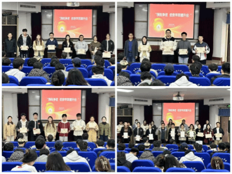 3月18日,在4号楼311报告厅举办“创新争优-优良学风提升会”。大会设立“学习模范之星”、“勤勉求知之星”、“领航担当之星”、“青春活力之星”四类奖项,对在学业成绩、学科竞赛、文体活动、文明宿舍建设等领域表现突出的45名学生代表及先进班级进行表彰。国家奖学金获得者数学类231班冯靖媛等6名优秀代表结合自身学习方法、科研创新、时间管理、压力调整、生涯规划等方面作经验分享,以朋辈引领激发全院学子见贤思齐的内生动力。
