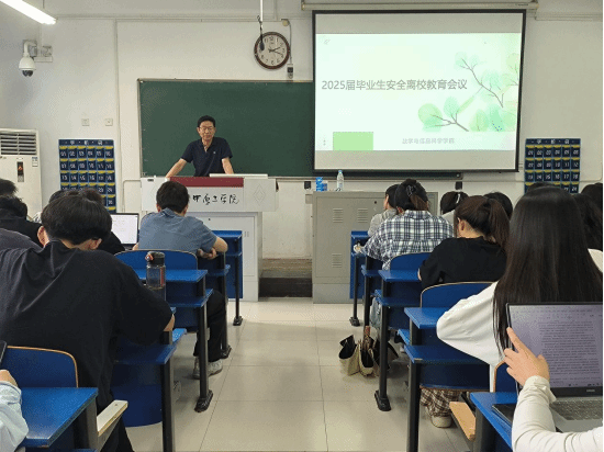 召开2025届毕业生安全离校会议,全体毕业生参加。毕业班辅导员陈婷详细讲解档案转递、党团组织关系转移及离校手续办理等注意事项,提醒同学们仔细核对信息,顺利离校。杨向宇围绕安全教育从意识形态、电信诈骗、交通安全、防溺水等多个方面详细说明,引导同学们严格遵守规章制度,增强安全意识,掌握安全技能,做到文明离校。