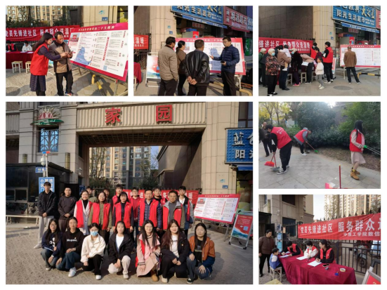 11月21日下午,李建伟、杨向宇带领数信学院行政教工党支部、本科生党支部、研究生党支部全体党员共20余人,到柏树刘社区阳光家园小区进行“党员先锋进社区,服务群众送温暖”活动。通过“学习宣传贯彻党的二十大精神”宣传板、“码上学”电子学习手册向小区居民广泛宣传党的二十大精神,利用学院数学专业特长开展学业辅导,有辅导需求但未在现场的孩子进行对接辅导等。最后,全体党员还对小区环境卫生进行净化美化。