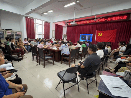为庆祝中国共产党成立104周年,弘扬伟大建党精神,表彰先进典型、凝聚奋进力量,7月1日下午,冰球突破mg正规官网党总支在2号实验楼343会议室隆重召开庆祝建党104周年暨“两优一先”表彰大会。学院党总支委员、党支部书记和师生党员、2024年学院“两优一先”获奖代表等60余人参加会议。会议由党总支副书记杨向宇主持。