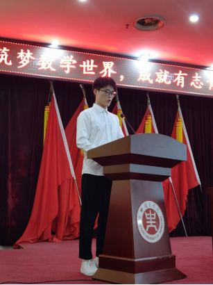 数学201班洪坤强作为老生代表进行发言。他用自己大学三年的经验倡议新生们做好大学规划,踏踏实实学习,丰富业余生活,多运动,拥有健康的身体,肯于吃苦,勇往直前,为实现既定目标打下坚实的基础。