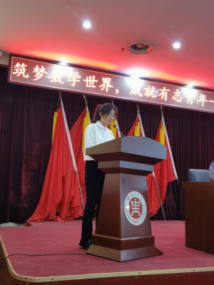 数据231班赵彬艳作为新生代表进行发言。她分享了自己对大学生活和学习的美好期待,在学好专业课的基础上拓展更大的知识版图,能够追求自己的热爱与理想,积极乐观的面对生活中的不如意,勇于突破极限,扬起梦想之帆。